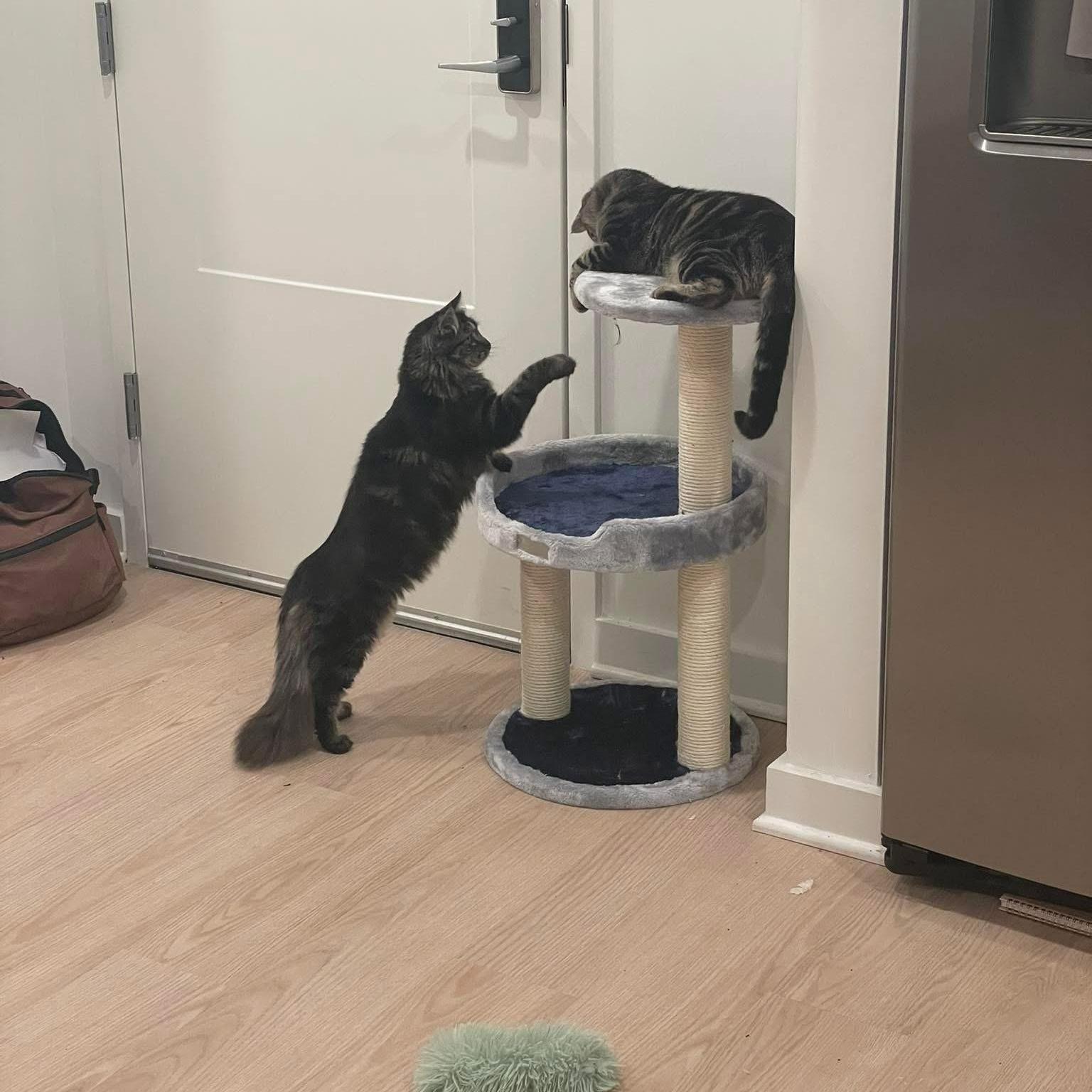 Coco and Bean are a bonded brother/sister pair of kittens, about 5 months old. Coco is the female with long hair, and her brother Bean is shorthair. They are both super sweet, playful, and well socialized as they’ve been raised in a foster home! They would fit into nearly any family. They are already fixed, up to date on shots, and fully vetted.